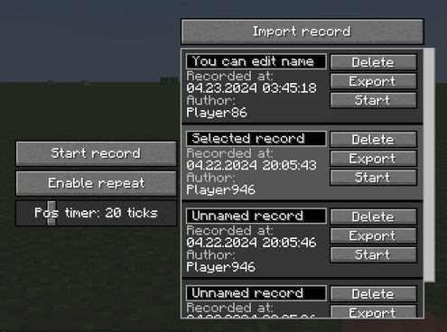 Simply start recording, perform any actions, stop the recording, return to the starting point, and then you can replay everything you did.